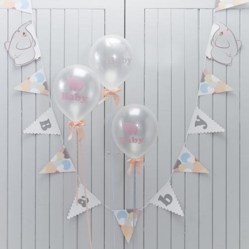 Motiven besteht aus 15 Wimpeln und der Aufschrift BABY.
