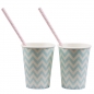 Diese hellblau-weißen Becher im beliebten Chevron Muster können Ihre