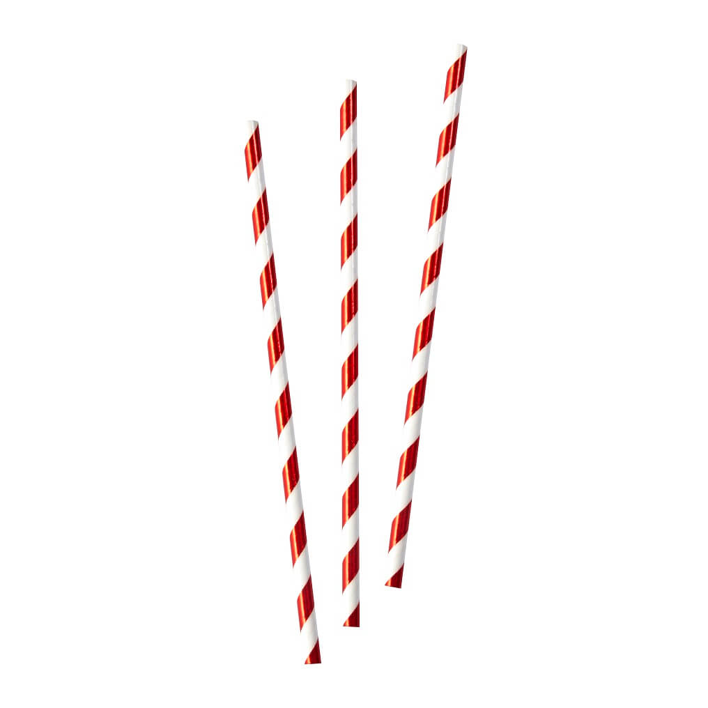 Strohhalme Streifen Metallic Glanz - rot/weiß