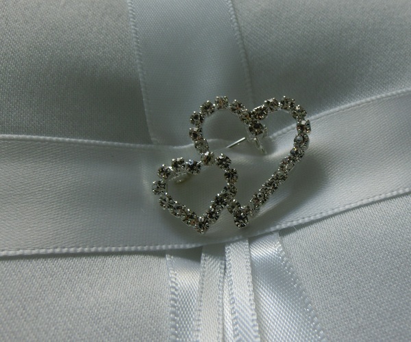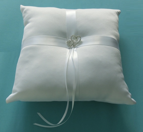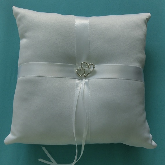 Wunderschönes Ringkissen mit einem silbernen Doppelherz in der Mitte.
