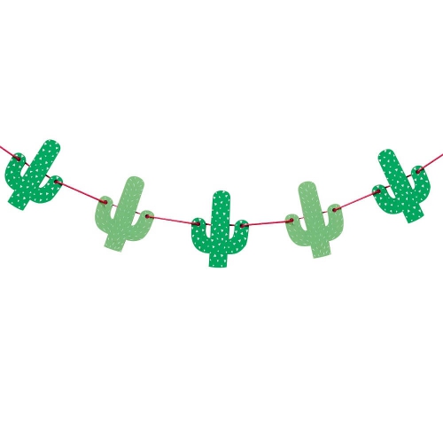 Diese tropische Girlande ergänzt Ihre Sommerpartydekoration. Die grün-weißen Kakteen sind der Hingucker auf Ihrem Sommerfest oder auch BBQ. Alles ist verbunden durch eine knallige pinke Schnur und die Girlande lässt sich idealerweise an Wand oder Fenster aufhängen und versetzt Sie und Ihre Gäste in Urlaubsstimmung.